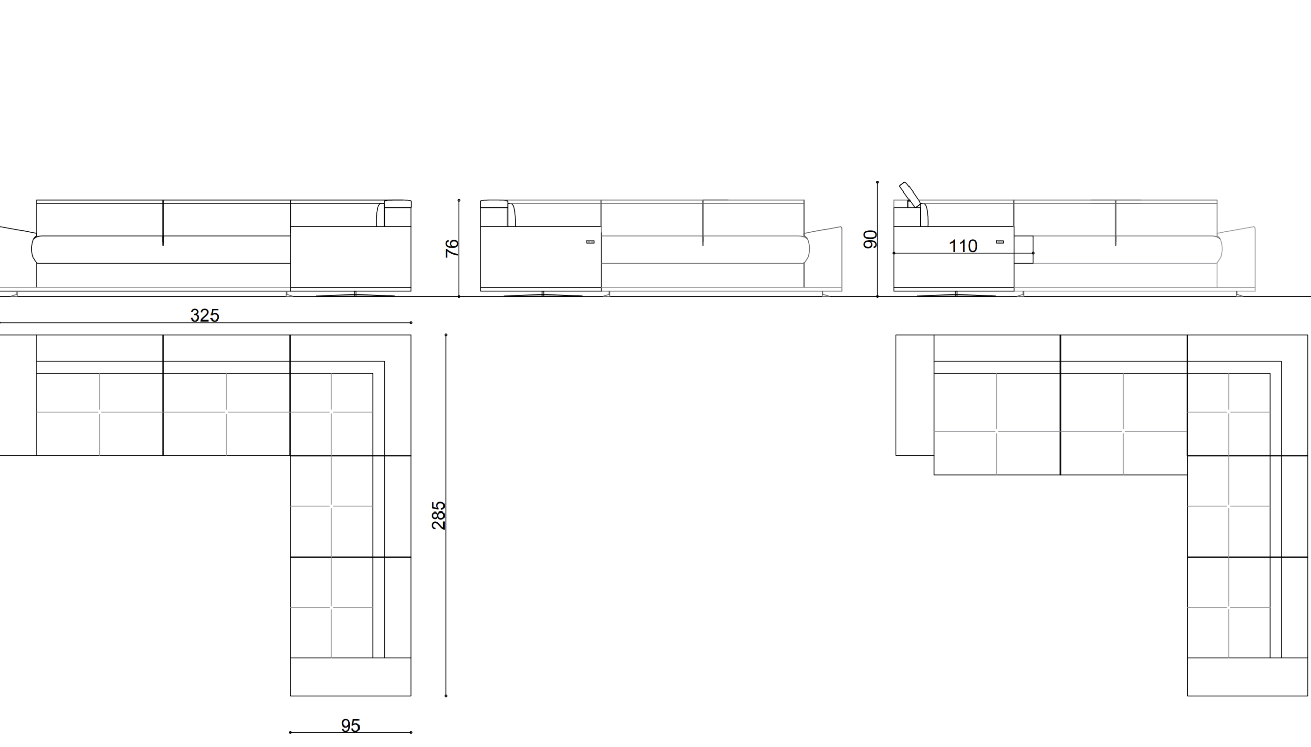 Dimenzije garniture su 325 cm x 285 cm x 90 cm, može se naručiti u više štofova i boja kao i u pravoj koži (LOLITA LUX kutna garnitura 325x285 - KOŽA).