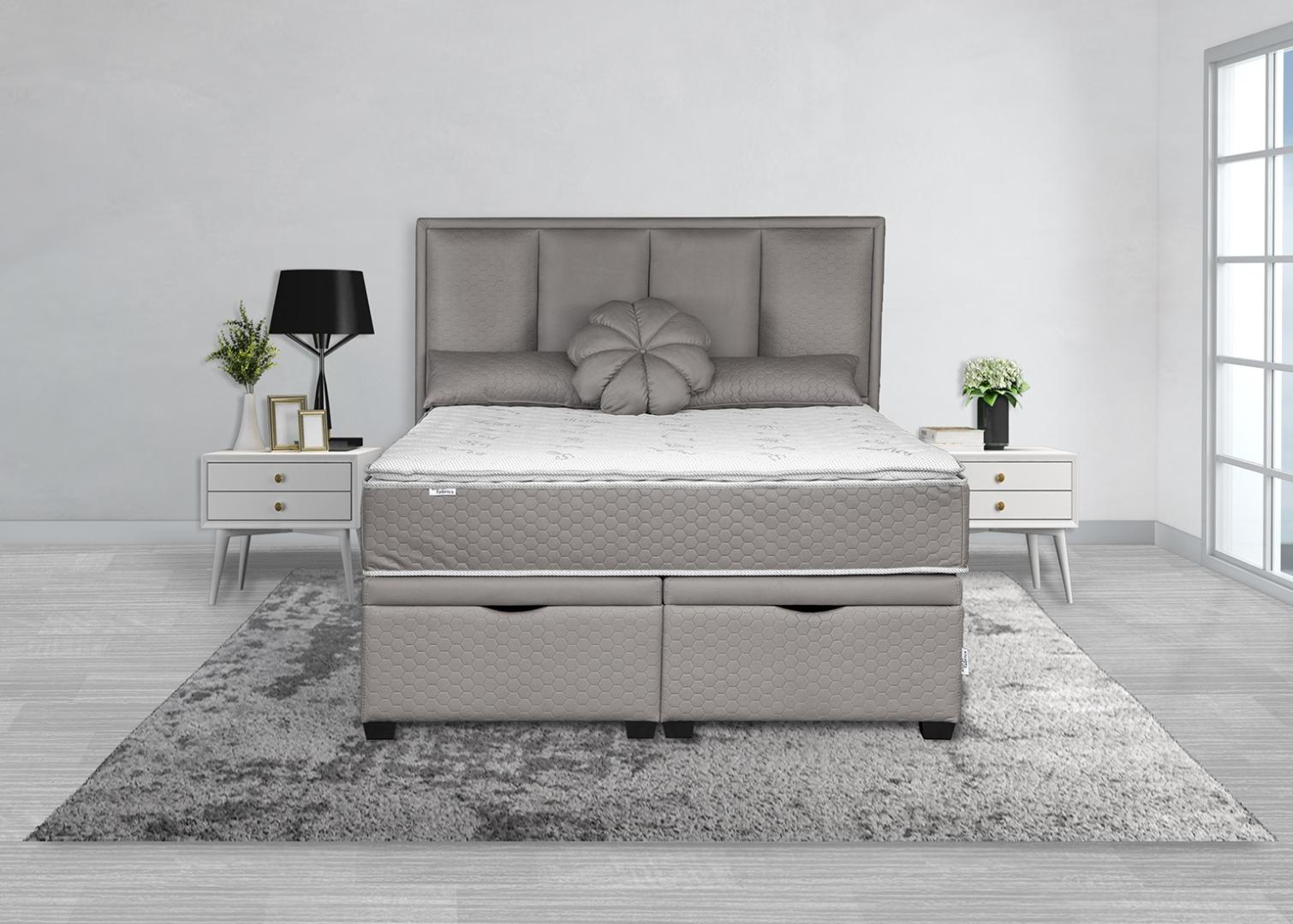 Sastoji se od tapecirane baze, elegantnog uzglavlja i kvalitetnog madraca visine 30 cm, sa memory topperom.
