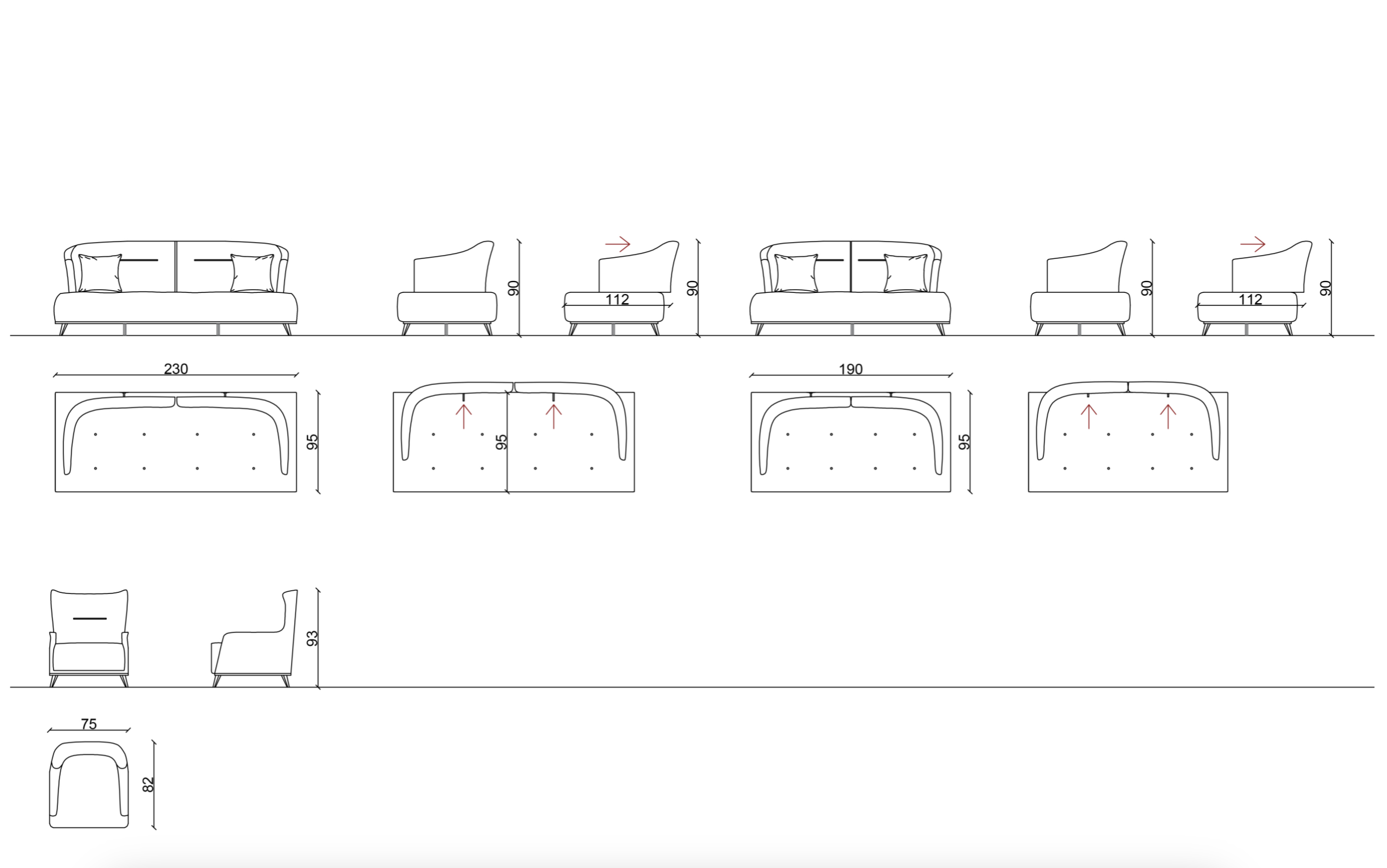 Trosjed, dvosjed i fotelja imaju mehanizme koji pomiču cijeli naslon unatrag, što pruža dodatni prostor za sjedenje/ležanje.
