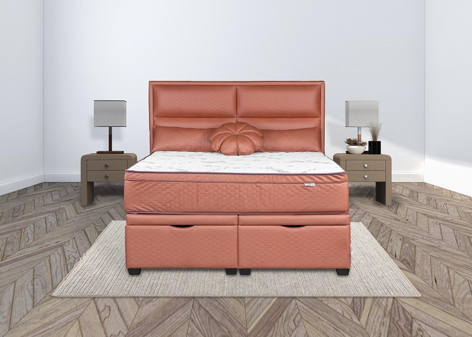 Sastoji se od tapecirane baze, elegantnog uzglavlja i kvalitetnog madraca visine 30 cm, sa memory topperom.